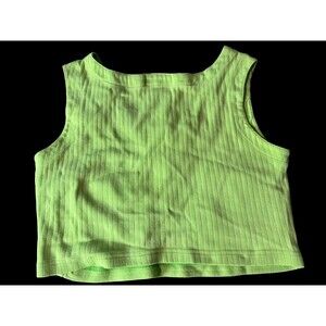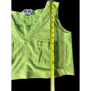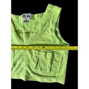 Vtg Women’s v neck tank top E.V. LTD With 2 Front Pockets Size M Lime Green