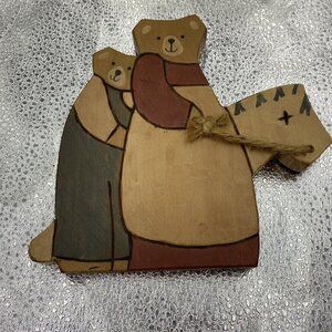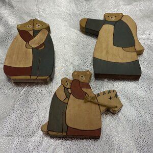 Vtg Wooden Bears Handmade Painted Folk Art Figures Primitive 80s Rustic Lot Of 3