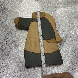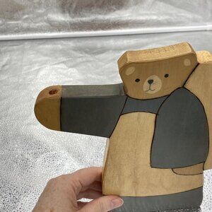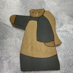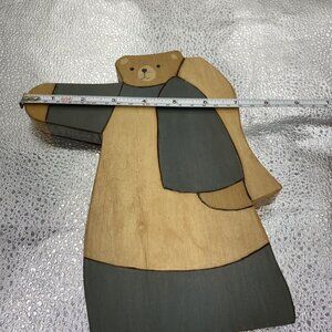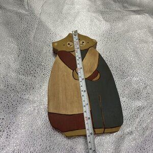 This lot of three vintage wooden bear figurines is a charming addition to any collection. Made in the United States, these handmade pieces showcase rustic folk art style and delicate painting. The bears are crafted from 3/4 inch thick wood material and are perfect for those who appreciate unique and one-of-a-kind items. The attention to detail and the overall quality of these figurines is exceptional. They would make a great addition to any home, office or even as a gift for someone special.