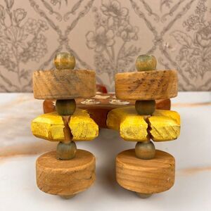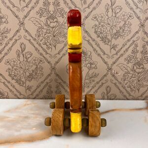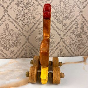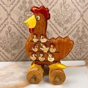 Vtg Wooden Chicken Pull Toy Wheels Hand Painted MCM Folk Art Farmhouse Nursery