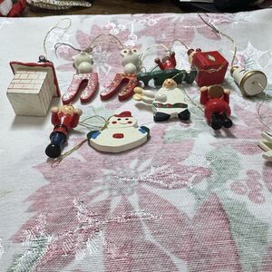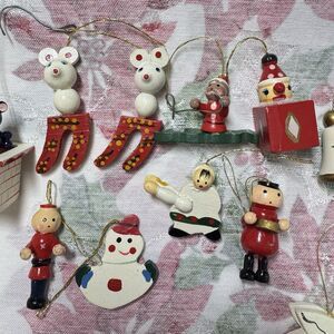 Vtg Wooden Mini Christmas Ornaments Lot 12pcs German Taiwan Clock Mouse Chimney