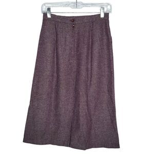 Vtg Wool Herringbone Midi Straight Skirt 8 READ Pleated Waist Wine Purple