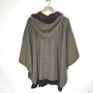Vtg Wool Keyhole Neck Fringe Hem Pullover Hooded Cape Poncho Gray Women's One Size