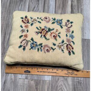 Vtg Wool Needlepoint Floral Throw Pillow Velvet granny French country cottage