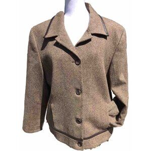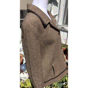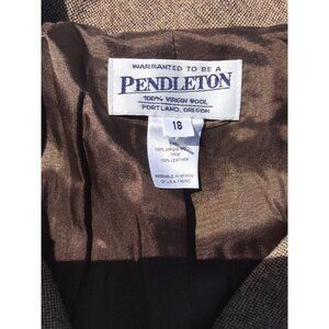 Vtg Wool Pendleton Brown HTF Suit Jacket Blazer Women’s 18 L Xl Leather Trim Mod