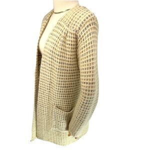 Vtg Wool Mohair Cardigan Sweater Size Medium Beige P.G.E. Open Front Old. Money