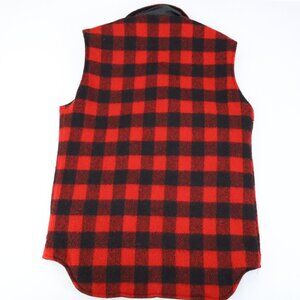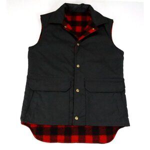 Vtg Woolrich Black Buffalo Plaid Vest Men's S Reversible Red USA Made Hunting