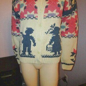 Vtg Woolrich Cardigan Womens Size S Wool Mock Neck Fair Isle Colorful Sweater EC