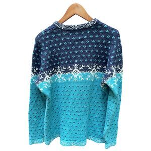 Vtg Woolrich Fair Isle Wool Sweater XL Petite Blue Nordic Snowflake Pullover