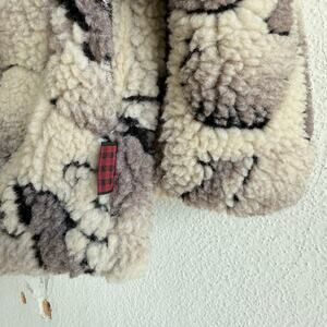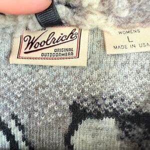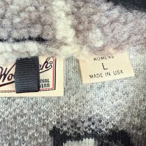 Vtg Woolrich Jacket Deep Pile Sherpa Fleece Polar Beat Print Womens L USA Made