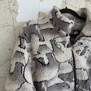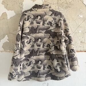 Vintage Woolrich sherpa fleece jacket with an all-over polar bear print and made in the USA. Plush high-pile, stand collar, full-zip front, and hand-warmer pockets. She's the quintessential cozy lodge or cabin layer that does pumpkin patches by day and campfire stories by night.