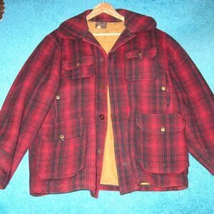 Vtg Woolrich Men's Red & Black Buffalo Plaid Hunting Jacket Sz 44