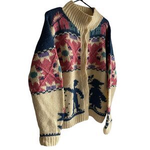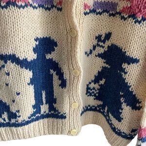 Vtg Woolrich Sweater Womens Medium Wool Boy Girl Heart Chicken Cardigan Cottage Core