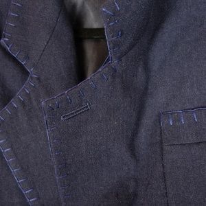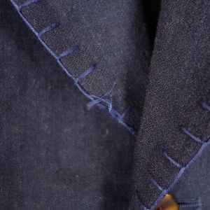 Vintage Workers For Freedom navy blue 100% wool blazer jacket made in Japan with embroidery detail.