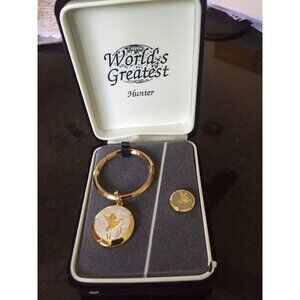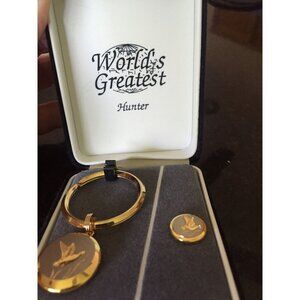 Vtg World’s Greatest Hunter Duck Keychain & Tie Pin Lapel Pin Gold Silver Metal