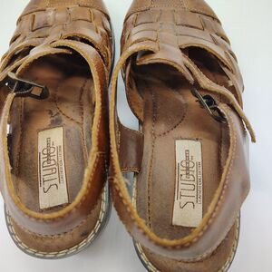 Vtg Studio Collection Woven Brown Leather Buckle Sandals Size 6.5
