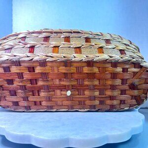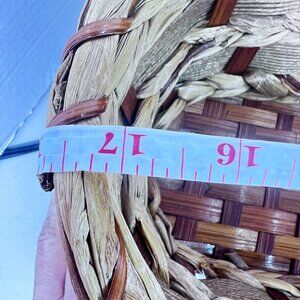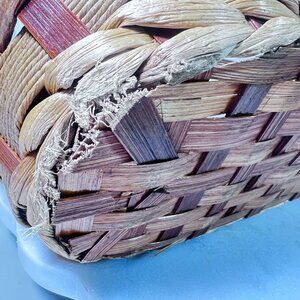 Vtg Woven Oval Basket Natural Mixed Media Rustic Storage Decor CabinCore