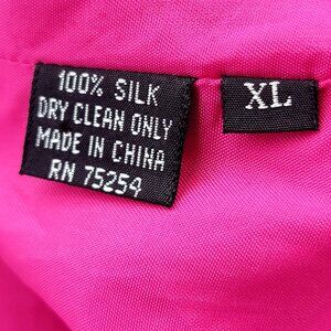 This vibrant hot pink blazer combines style and comfort with its lightweight silk fabric and subtle embroidered starburst design. Its open front and lined interior provide ease of wear while maintaining a polished look. Ideal for elevating professional or casual outfits.