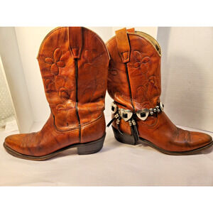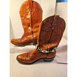 Vtg Wrangler Brown Leather Cowboy Boots with Silver Anklet western cowgirl 8.5