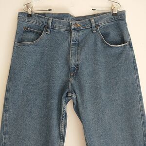 Vtg Wrangler Jeans Men 34x32 Fits 34x31 Blue Medium Wash StraightLeg T102 Cowboy