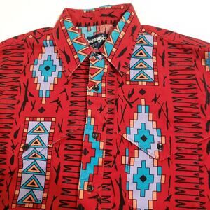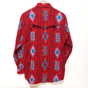 Vtg Wrangler Mens SIZE 16-35 Red SouthWestern Cowboy Cut X-Long Tail Shirt Rare