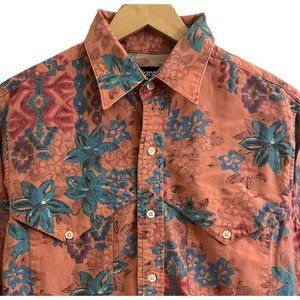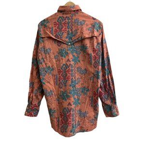 Vintage Wrangler Men's Button Front Long Sleeve Western Shirt Floral Aztec Pockets Pink/Orange