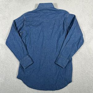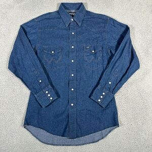 Vtg Wrangler Shirt Mens 15.5-33 Denim Jean Pearl Snap X-Long Tails Regular Fit