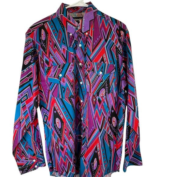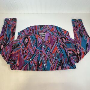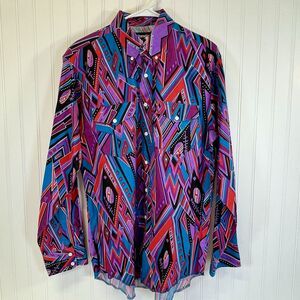 Vtg Wrangler X Lg Tails Shirt 16.5 35Purple Aztec Rodeo Cowboy Western Checotah