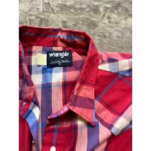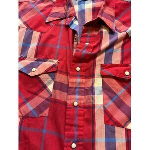 Vtg Wrangler XL Pearl Snap X-Long Tails Cowboy Cut Regular Fit Red Plaid Shirt