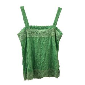 Vtg Xhilaration Tank Top Medium Green Lace Trim Crinkle Texture Y2K Festival