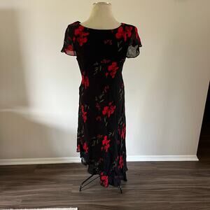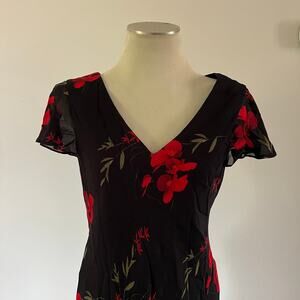 Vtg Y2K 2000s Black Floral Tiered Maxi Dress Sz 12 Fairy Grunge Whimsygoth Prom