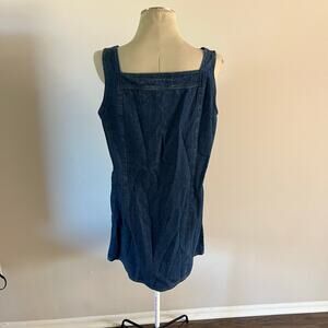 Vtg Y2K 2000s Blue Denim Square Neck Jumper Dress Plus Sz 16 Cottagecore Grunge