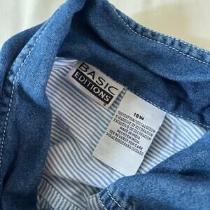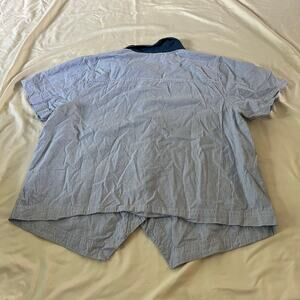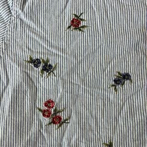 Vtg Y2K 2000s Blue Pinstripe Floral Embroidered Cottagecore Top Plus Sz 18W