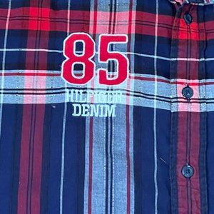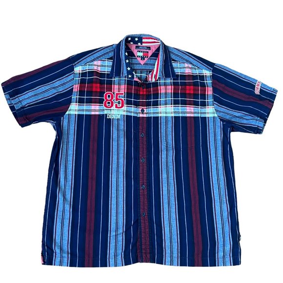 Vtg Y2K 2001 Tommy Hilfiger Jeans Plaid Short Sleeve Button Up Shirt Men's L