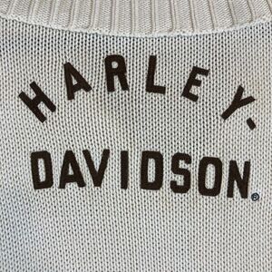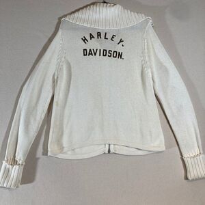 Vtg Y2K 2004 Harley Davidson Women 2X Chunky Knit Ivory Spell Out Back Full Zip