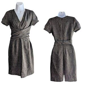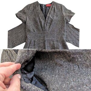 Vintage Y2K 2009 Launch Year CH CAROLINA HERRERA Gray Tweed Wool Silk Blend Wrap Cap Sleeve Mini Dress Size 6