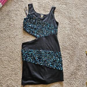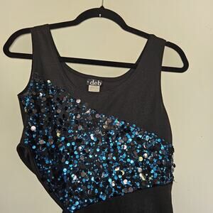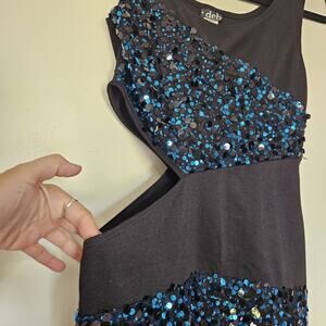 Vtg Y2K 90s Deb Mini Dress Size L Side Cutout Blue Black Sequin Party Club HOCO