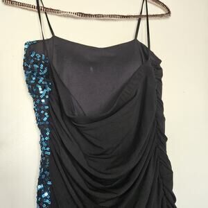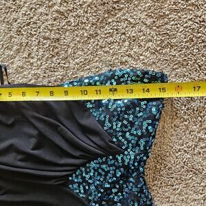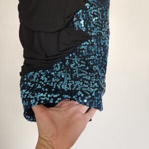 Vtg Y2K 90s Deb Strapless Mini Dress Size L Blue Sequin Bodycon Party HOCO Club