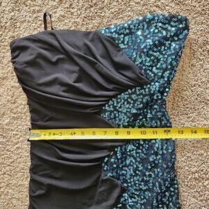 Vtg Y2K 90s Deb Strapless Mini Dress Size L Blue Sequin Bodycon Party HOCO Club