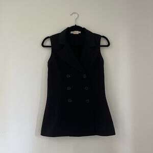 Vtg Y2K 90s La Belle Black Button Up Vest Top Tailored Size 3 Double Breasted