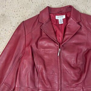Vtg Y2K Alfani Red Lamb Leather Jacket Zip Front Classic Fall Size 1X Women's