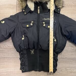 Vtg Y2K Apple Bottoms Bomber Puffer Jacket Faux Fur Hood Down Filled MED 2000s