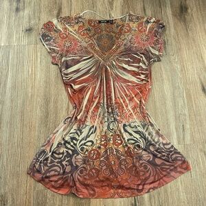 Vtg Y2K Apt 9 Blouse Top Women’s S Boho Grunge Embellished Babydoll Sublimation