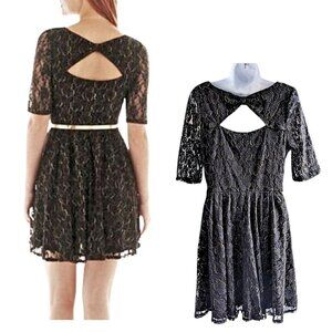 Vintage Y2K BY & BY Black Cutout Bow Back Lurex Lace Overlay Skater Mini Dress Size XL