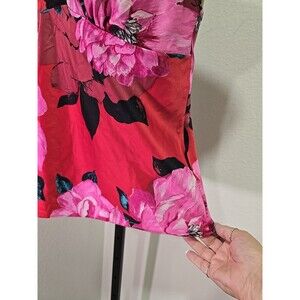 Vintage Linea Donatella Coquette Babydoll Fairy Goth Cami Top Satin Womens Small Pink Red Bright Lace Floral