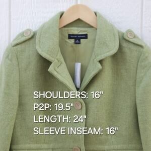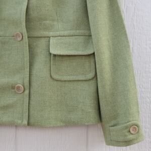 80% Wool 15% Nylon Medium Avocado Green Lined Suit Military Style Jacket Preppy Business Corporate Travel