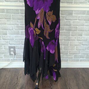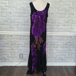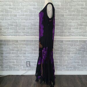 Vtg Y2K Beaded Floral Maxi Dress Fairy Whimseygoth Grunge Handkerchief Hem 18