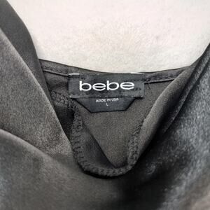 Vtg Y2K Bebe Black Satin Slip Maxi Dress Sz L Spaghetti Straps Babydoll Evening