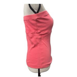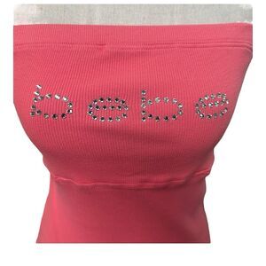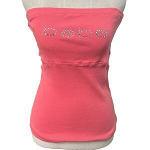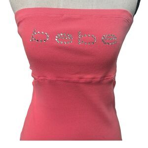 Vtg Y2K Bebe Rhinestone Logo Tube Top Pink Ribbed Knit Strapless Tank Made USA L