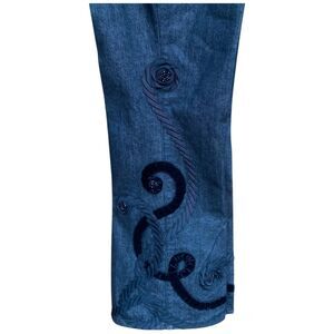 Vtg Y2K Black Swirl Velvet Embroidered Stretch Flare Jeans Pants Sz 10 Boho Goth